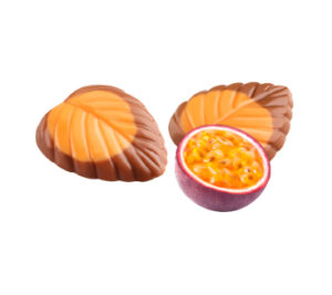Hojas de chocolate con leche y maracuyá